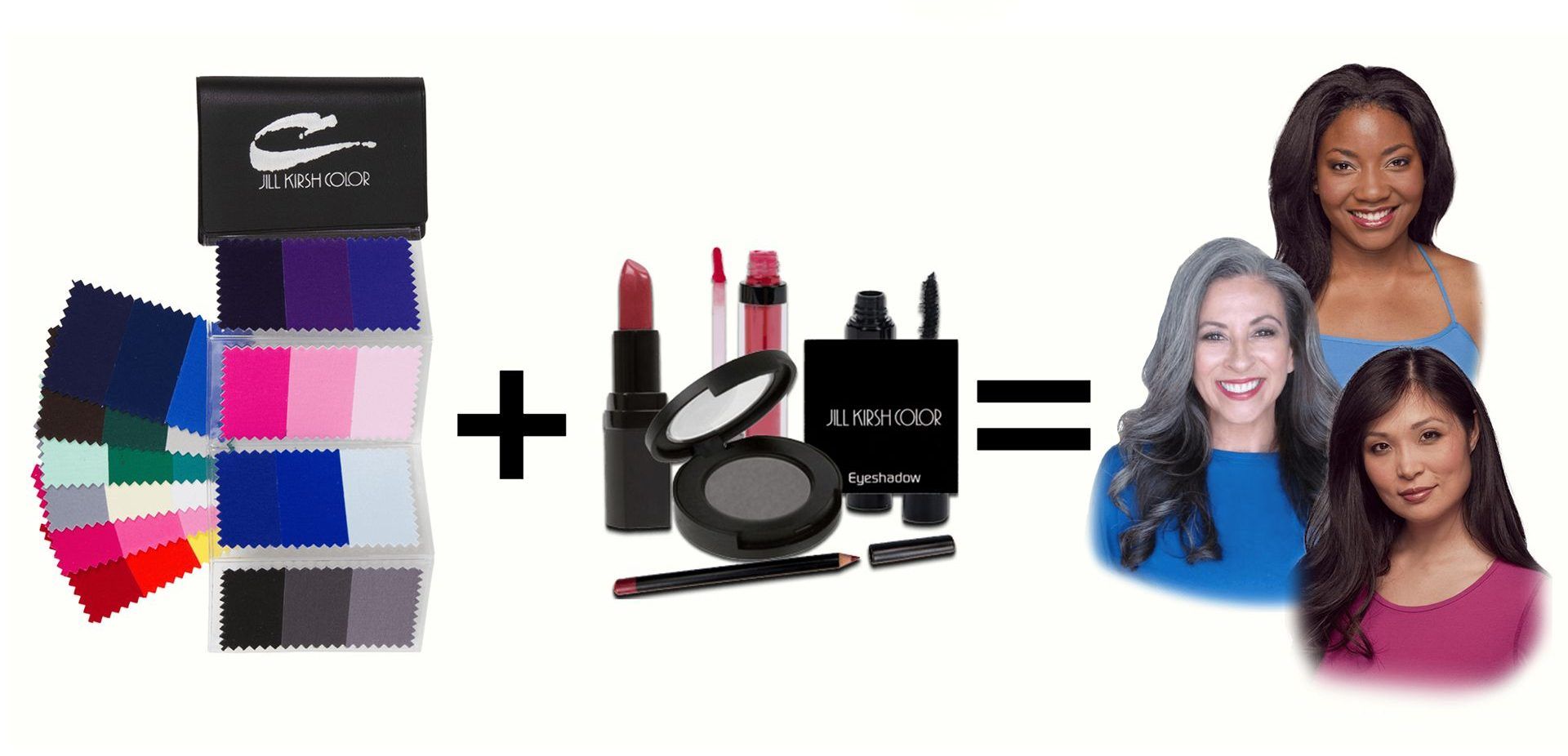 Jill arrives with her famous ‘trunk show’ of perfect colors in fabric, make- up and accessories. She drapes guests in swatches before a custom mirror and the immediate results appear to be magical in that each guest looks more beautiful, younger – yes, thinner in front of your eyes.